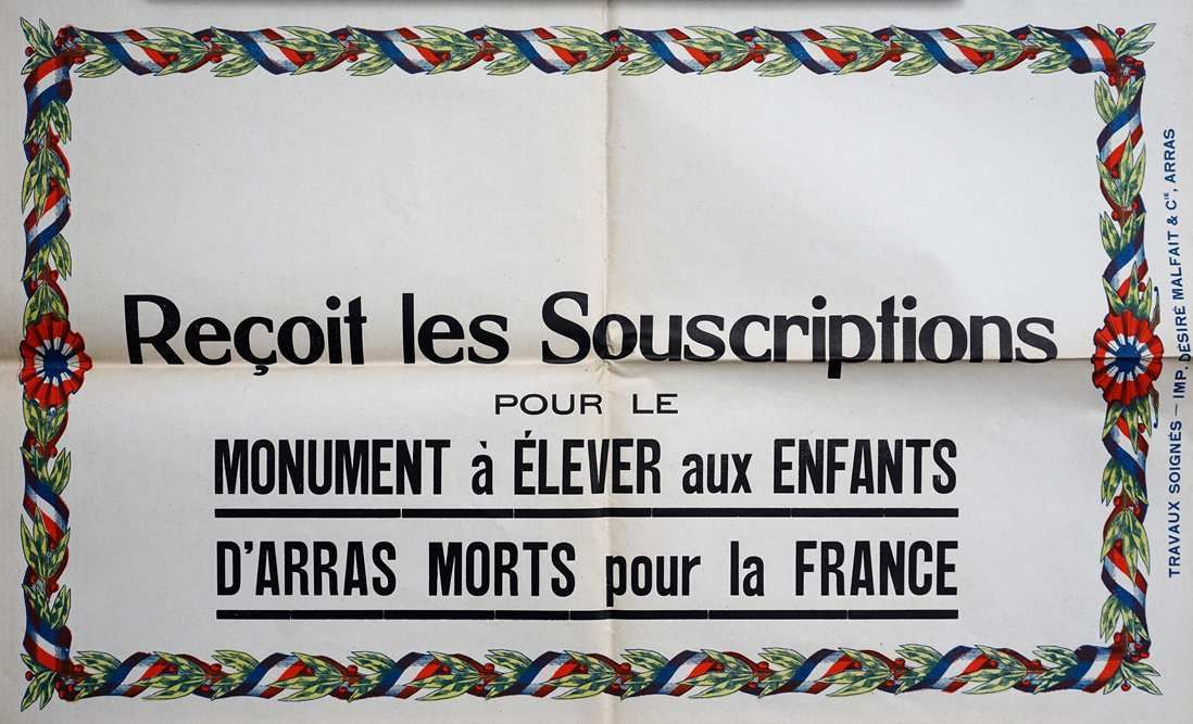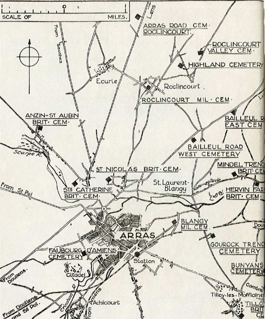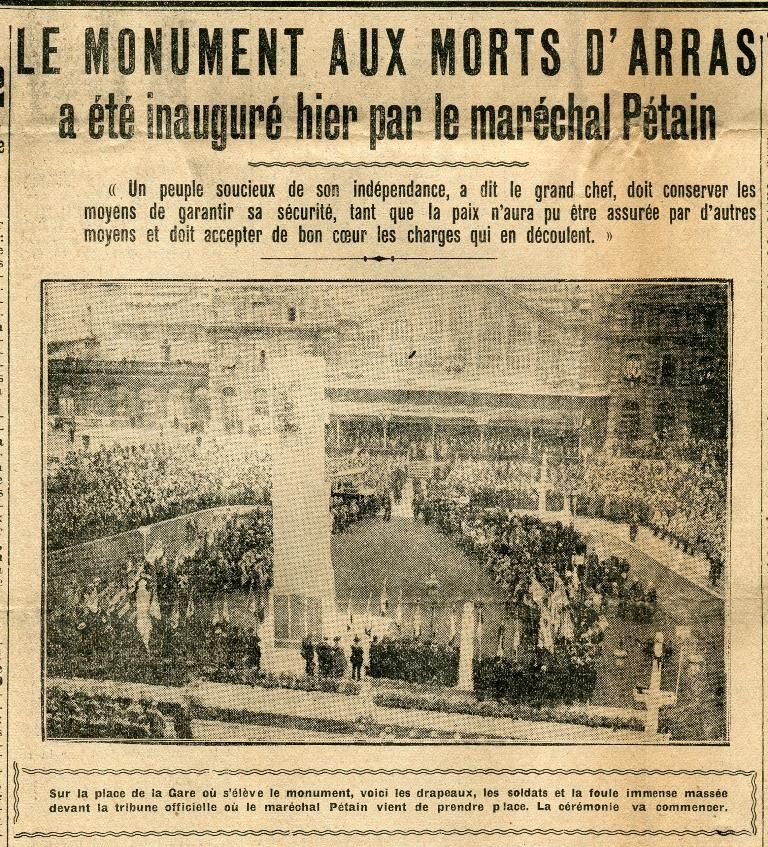 A Arras, la plaque commémorative est inaugurée le 11 mai 1936 par le ministre britannique de la Guerre, M. Duff-Cooper. 1
