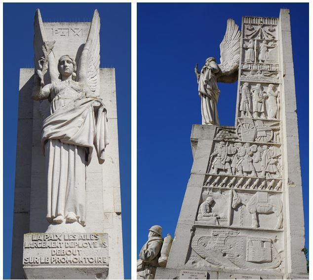 « L’ensemble se compose d’un corps architectural portant sur sa face antérieure une statue de la Paix et une autre du Soldat français, sur les faces latérales seront sculptés des bas reliefs.