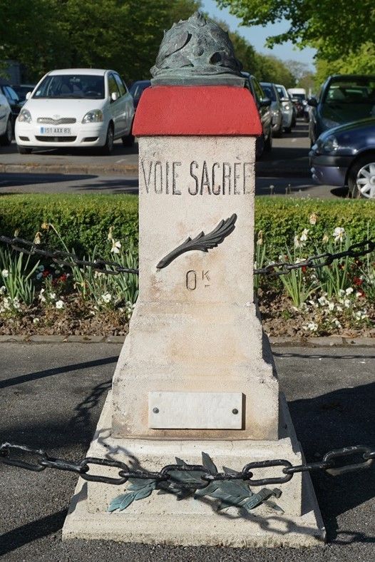 Les combats de Verdun de 1916 sont devenus le symbole de l'effroyable effusion de chair et de sang de la Grande Guerre. Le champ de bataille était alors alimenté par un flot continu d'hommes et de matériels grâce à la seule route de Bar-le-Duc à Verdun qui fut baptisée du nom de Voie Sacrée par l'écrivain Maurice Barrès.