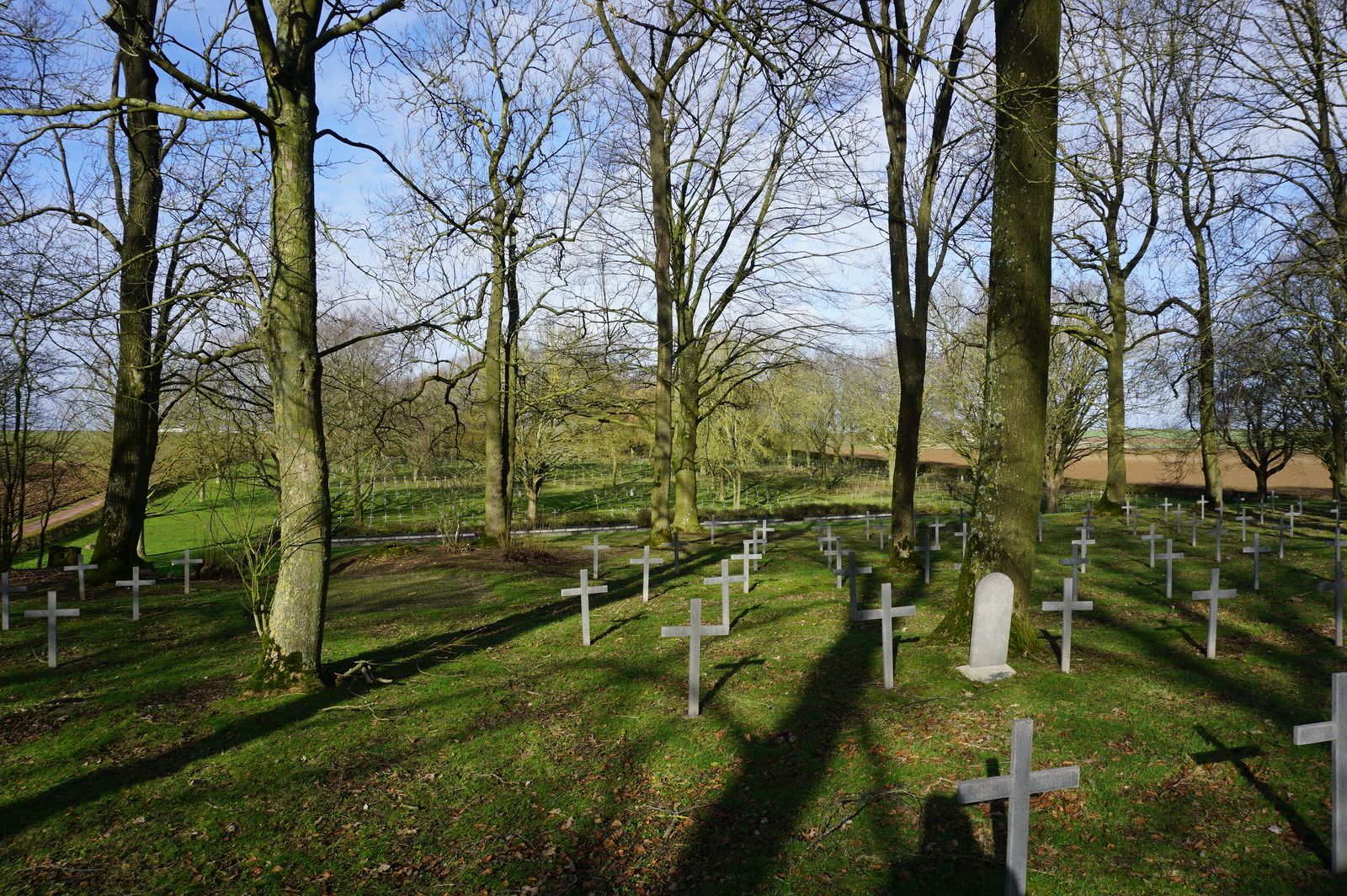 Ce cimetière militaire a été créé par les autorités françaises en 1921-1922 pour regrouper les corps de soldats allemands qui avaient été inhumés provisoirement dans de nombreux endroits des environs.. En 1972, le Volksbund Deutsche Kriegsgräberfürsorge a procédé à la conception définitive du cimetière et au remplacement des anciennes croix de bois provisoires par des croix en métal comportant les noms et dates de décès.