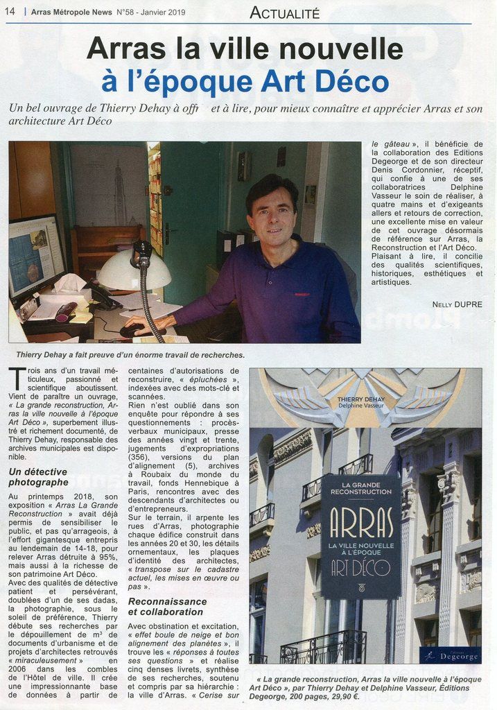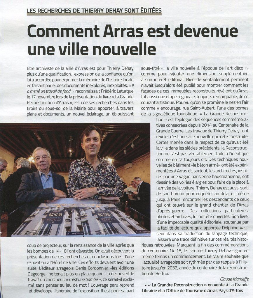 "... superbement illustré et richement documenté [...] ouvrage désormais de référence sur Arras, la Reconstruction et l'Art déco. Plaisant à lire, il concilie des qualités scientifiques, historiques, esthétiques et artistiques." Arras Métropole News