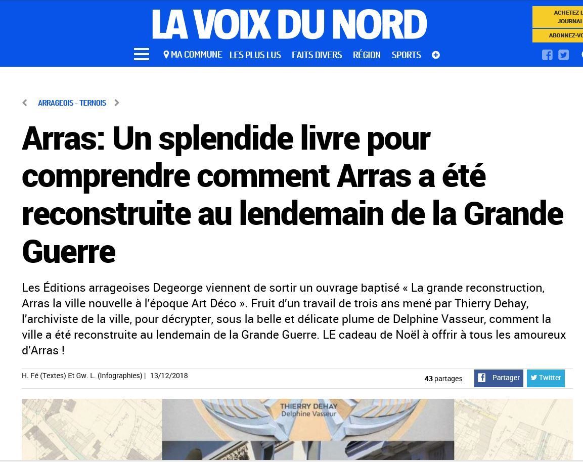 "Arras : Un splendide livre pour comprendre comment Arras a été reconstruite au lendemain de la Grande Guerre." La Voix du Nord.